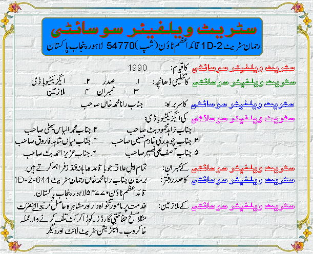 Rehman St. 2-D1 Quaid E Azam Town (Ship) 54770 Lahore Pakistan